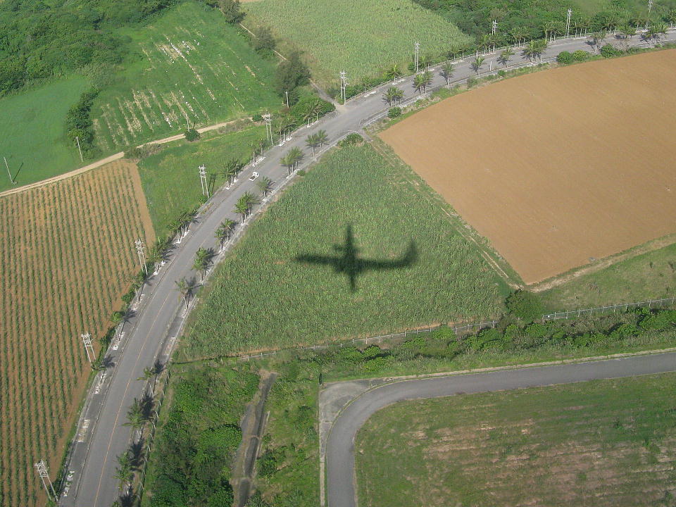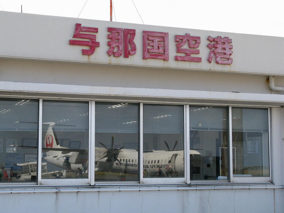 | 与那国に到着した。 窓ガラスに機影を入れた。 |
