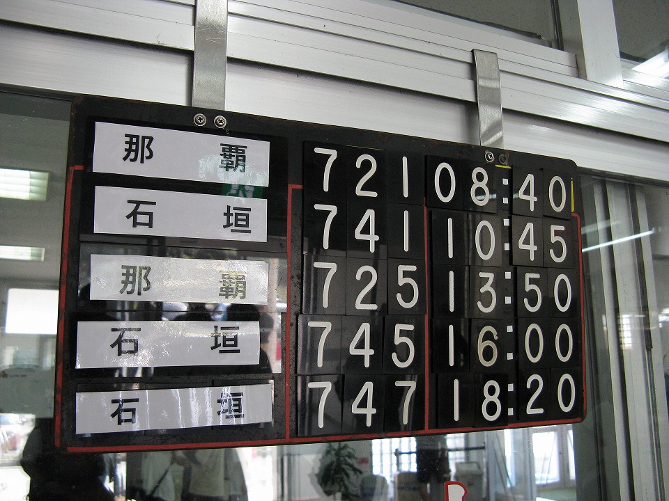| 待合ロビーに掲げられていた到着時刻表。 何ともアナログでいいね。ずっと続けてほしい。 |