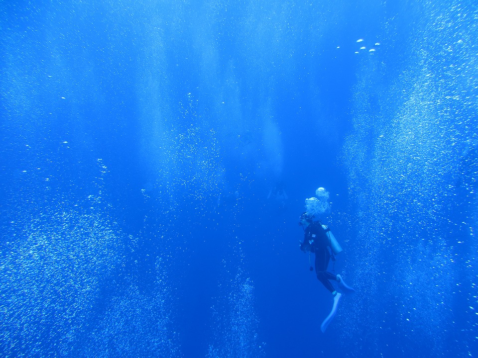 | ハンマーは、深いところにいたので俺は追っかけなかった。 深場に行ったダイバーのエアーが上がってくる。 |