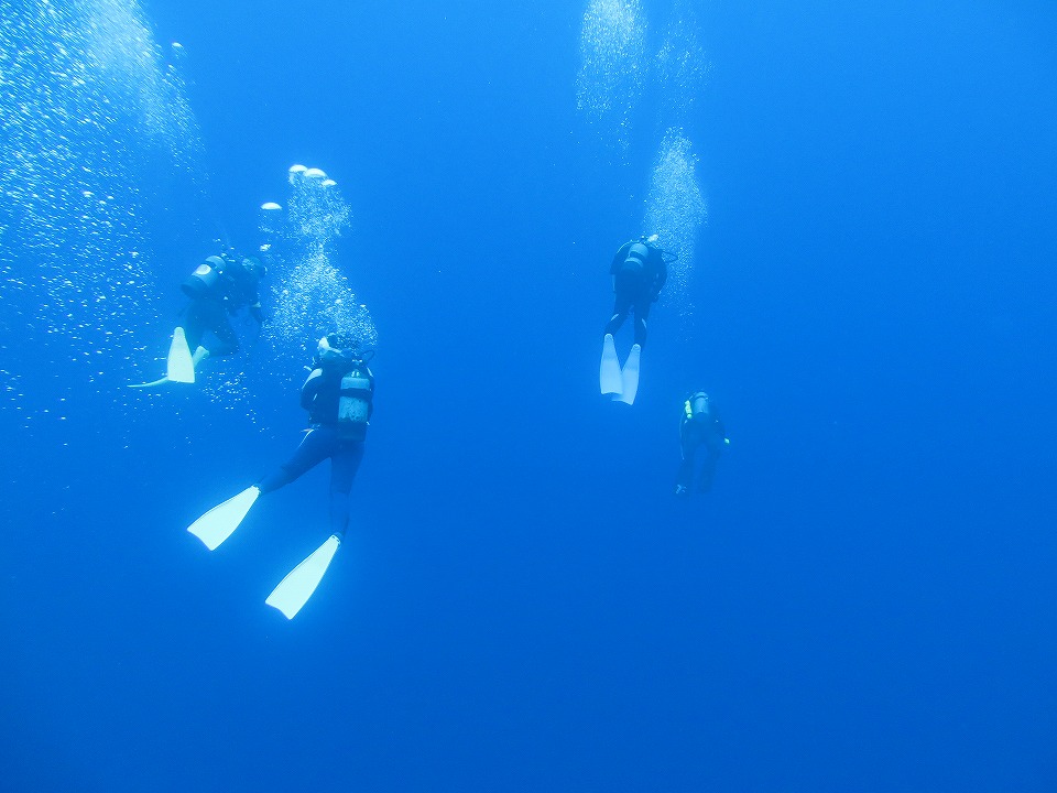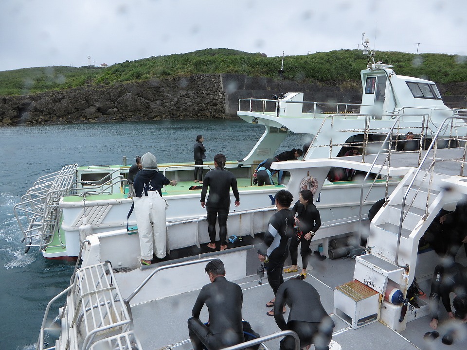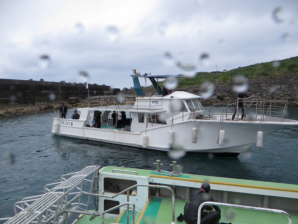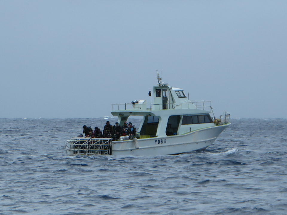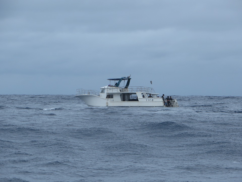 | ちょっと休憩して、3本目。 今回初めて1匹も見なかった。 この写真は同時に出港した「YDS7」チームのEN直前。 帰港してからのシャワーとフロが、冷えた身に染みるぅ。 |