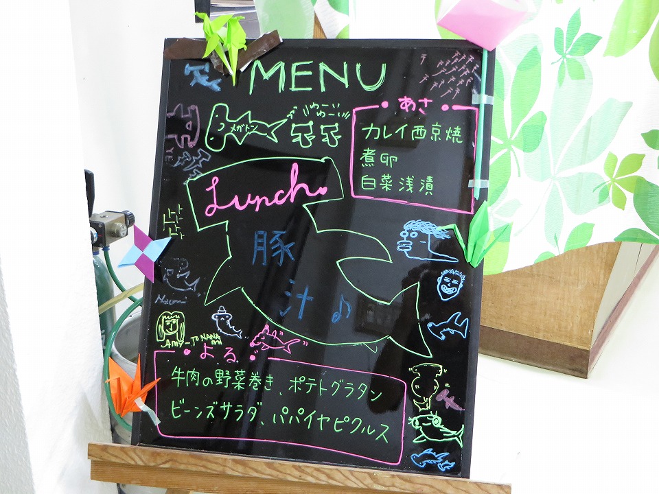 | 空港に迎えに来てくれていた与那国ダイビングサービス(YDS)のクルマで送ってもらった。 ちょっと休憩して昼メシ。 |