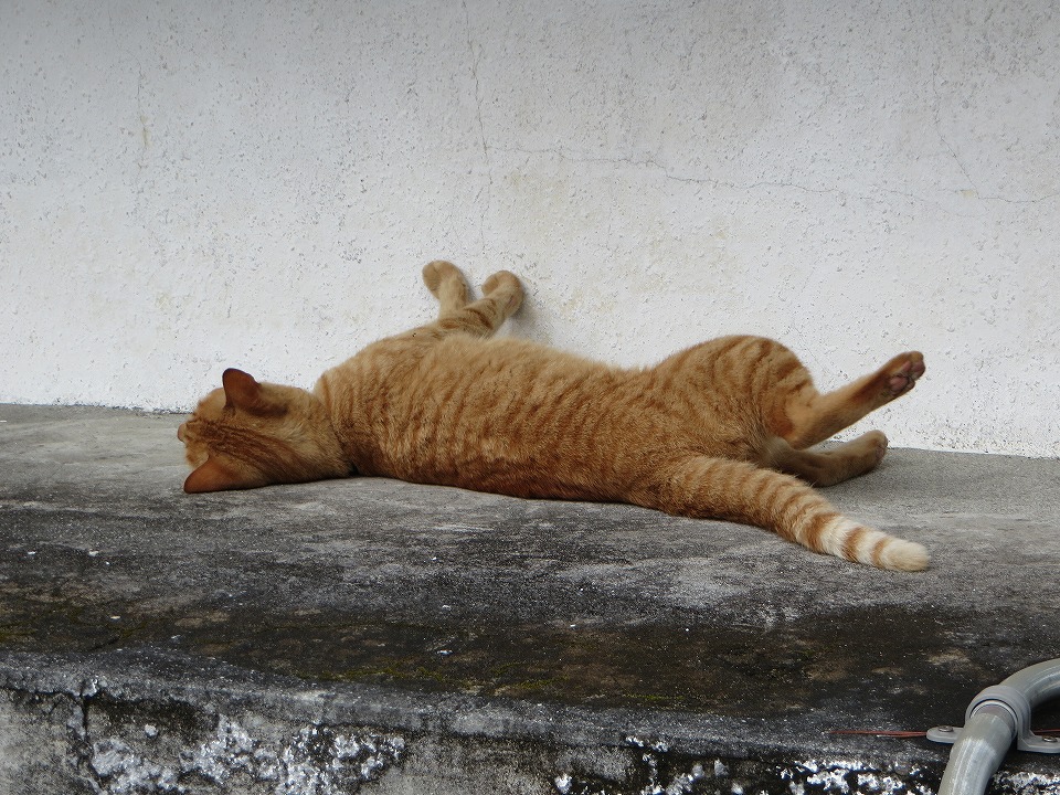 | YDS前では、ネコ吉がゴロゴロと背中をかゆがっていた。 |