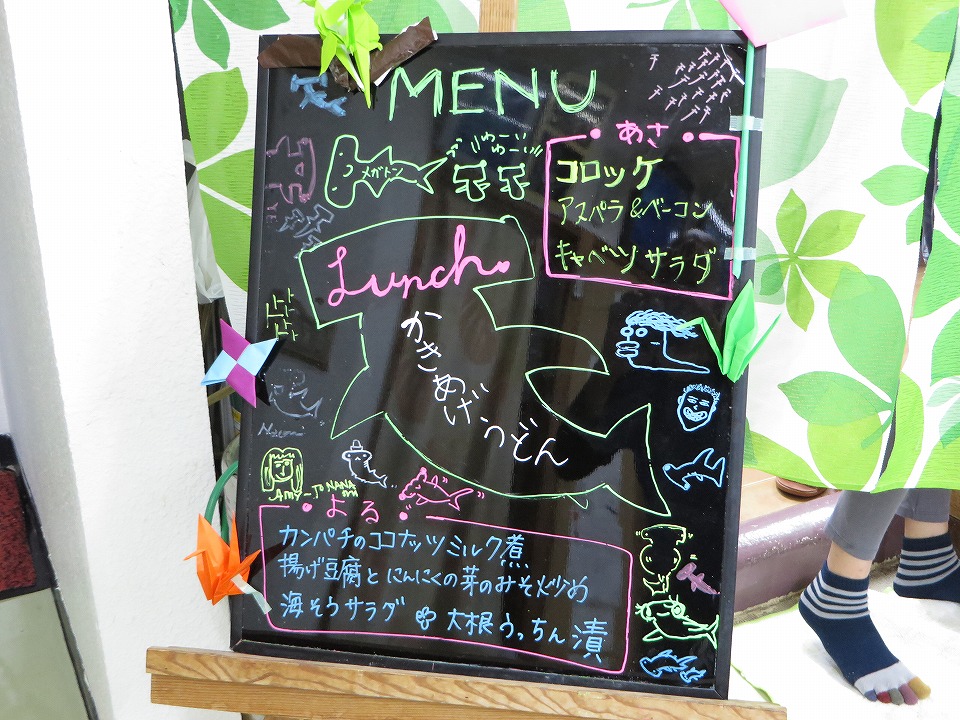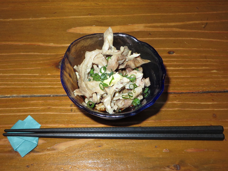 | 「中身ポン酢」(献立の表記ママ)。 「身」の字が「味」じゃないことが気になるな~。観光客向けの書き方にしてあるのかな。 以前YDSで中味料理が献立の日に、MENUボードにはちゃんと「中味」って書いてあったゾ |