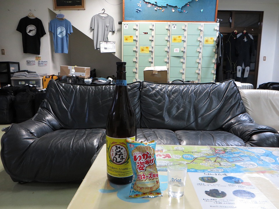 | 「海響」での呑みを終え、今度はYDSに呑みにきた(笑)。 いかの姿揚げは来る途中の「大朝商店」で120円ナリ。 この後、他のダイバーと「よしまる荘」のリビングでわいわい呑んで、 さらにその後は、今日到着した韓国チームも合流して22時のリミットまでゆんたくしていた。 韓国チームは、若い男女6名(ゆんたく参加は5名。)で来ていて、 そのうちの1人の男子が、そこそこ日本語が話せるし、他のみんなもちょっと英語が話せるので、 コミュニケーションはそれほど難しくなかった。 みんな、今日からのダイビングでハンマーが見られた上(3匹だけだけど。)、海底遺跡も行けたので上々のスタートだね。 明日からも楽しんでね~。 |