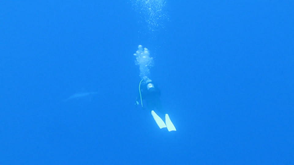 | 3本目。 ハンマーはホントに遠くに1匹だけ(写真・動画なし。)。 ダイビング中の大半はこのように中層をユラユラしてるだけ。 |