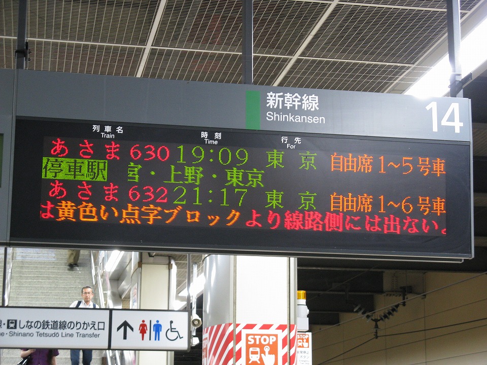 | 信州に着き、職場で出張の後片付けをバタバタと済ませ、 帰宅して荷物の最終チェックをして、奢ってタクシーに乗り、長野駅に着いた。 「あさま630号」で東京に向かう。 このページは本来ならここからがスタートなんだよね(笑)。 |