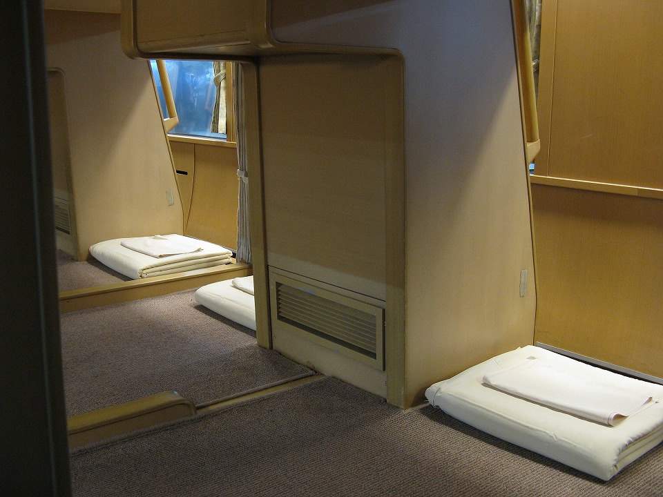 | ところで、以前から疑問なのがこの「ノビノビ座席」の短距離利用。 このページはあくまでもやいま用なのでここで詳しくは書かないが、 「ノビノビ座席」はあくまでも座席なので再販する。 つまり1つの席を東京~横浜・横浜~静岡というように複数の客が利用できるはずだ ちなみに、寝台の場合は利用は1回限りなので、例えたった1区間の東京~横浜だけでも売れたら、 横浜以降はその寝台は販売しない。 今回の場合、1か月前の発売時に「東京~横浜」での空席は2つだった。 そして、乗車直後の車内アナウンスでは「満席」とのことだった。 それなのに東京発車時点で8席が空いていた。 これは大人の事情の臭いがプンプンするな~。 |