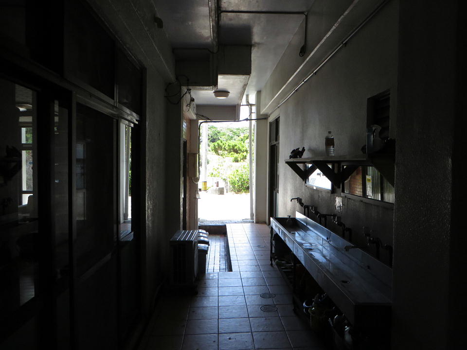 | ダイビングサービスと、併設の民宿の間の通路。 この通路を抜けて向こう側に出た途端、 「ブワッと」熱気に包まれる。これがいいんだ(笑)。 この感覚が分かるのは、灼熱の与那国に来たことがあるダイバーだけよ~。 |