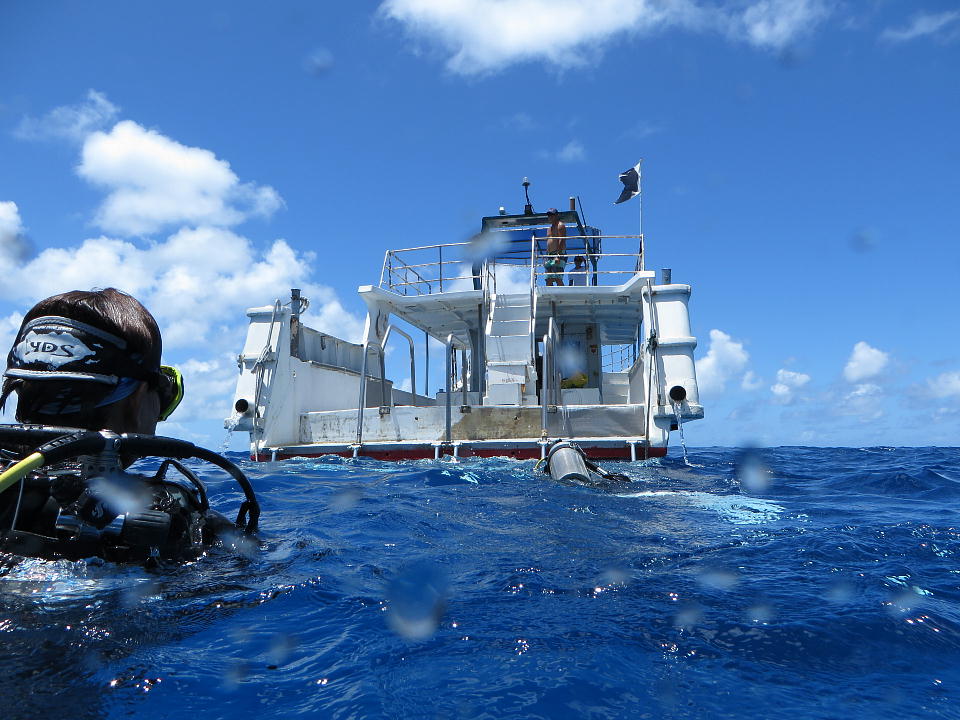 | 実に楽しい1本が終わり、浮上。 ボートにピックアップしてもらう。 |