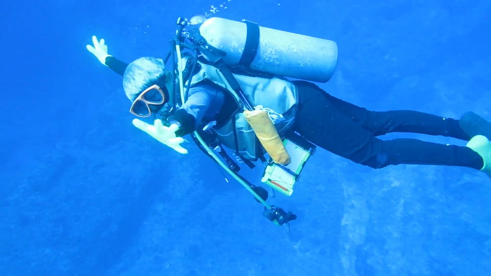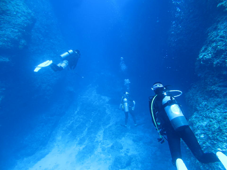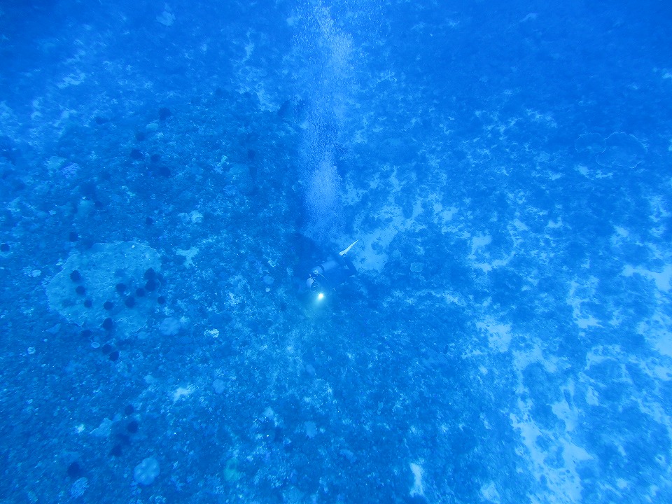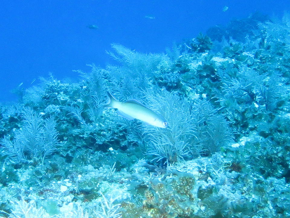 | ENしてすぐ。 気持ちのいい透視度。 ちょっと流れがあるので、先にドロップオフから遊ぶ。 |
