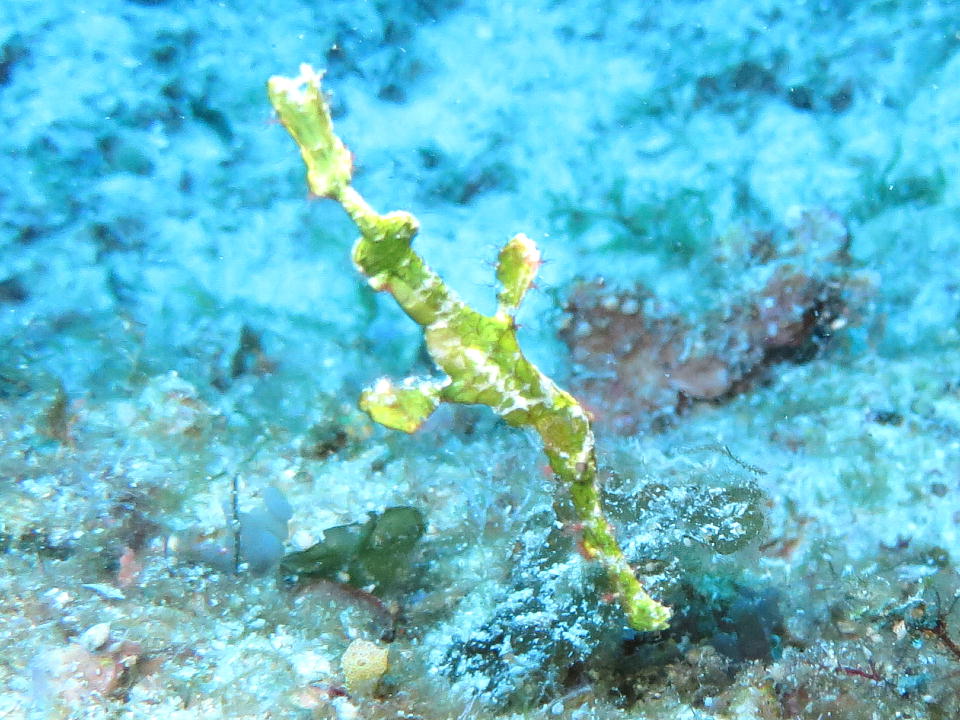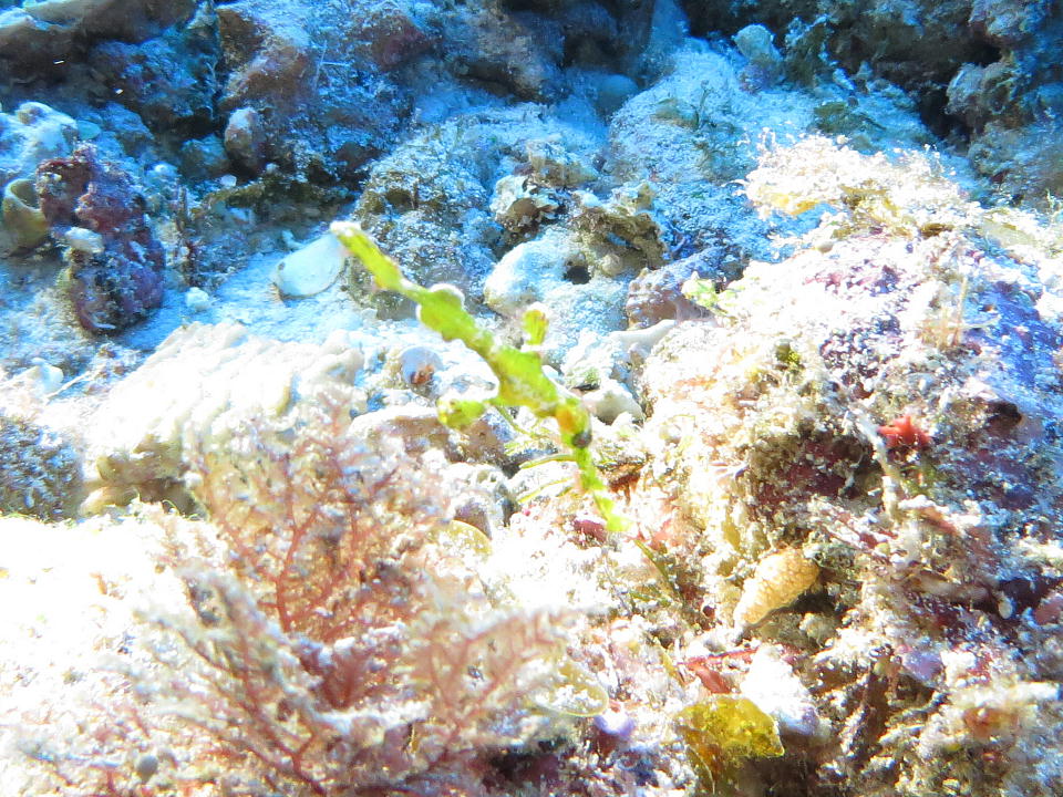 | 初日にも見たカミソリウオの一種で通称ハリメダゴーストパイプフィッシュ。 初日よりはよく撮れた。 この後、深場でのんびり潜っていたらDECOが出てしまった…。 みなさま、浮上が遅くなり先にEXしていただき、申し訳ございませんでした。 |