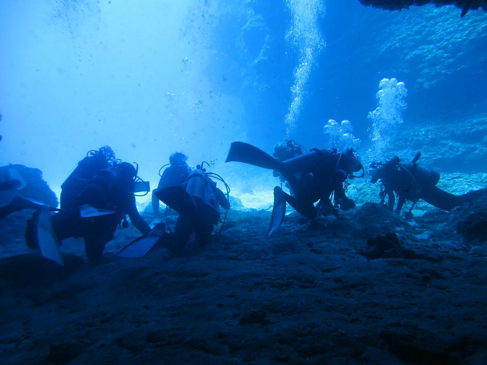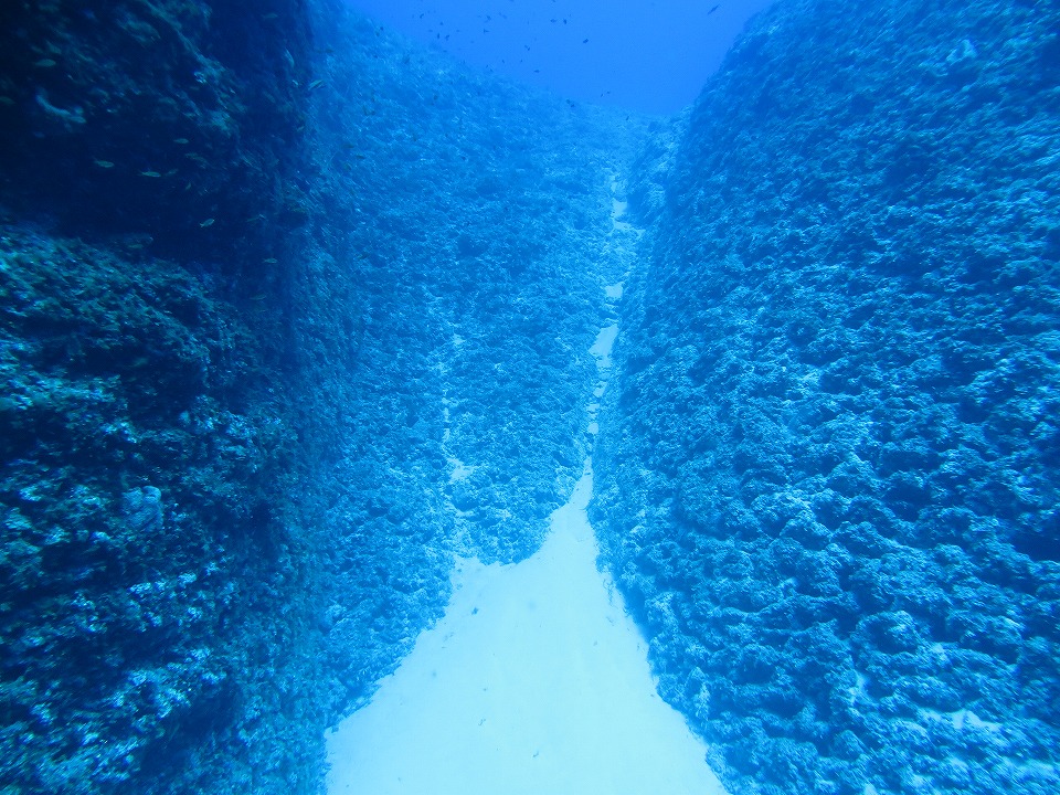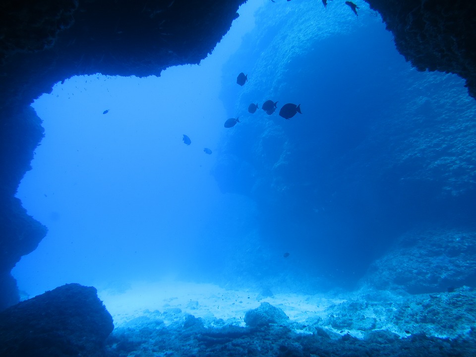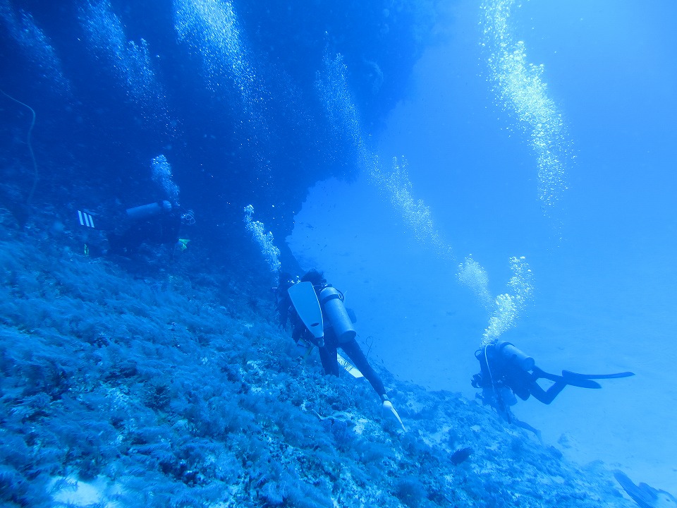 | 半洞窟に向かってユラユラと水深を下げる。 |