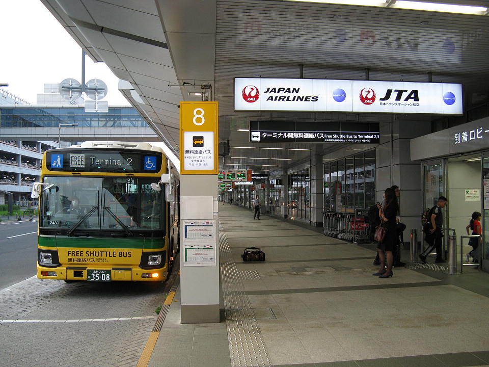 | はい、おはようございました。 無料連絡バスで第1ターミナルに移動した。 「JTA」の文字に心が躍る。 今日のJL971便はJAL運航なのだが、機材はJTAだろうか。 |