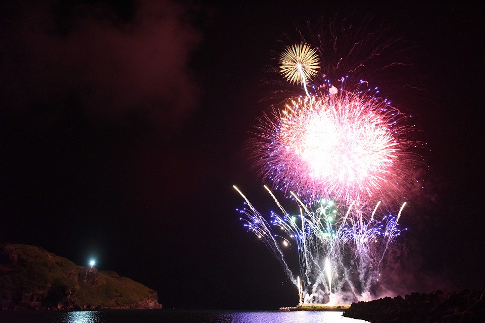 | 21:20に花火が始まった。 うわ~、モロに北斗七星に被る位置だ…。 打ち上げ時間が約10分間というのはこれまでと変わらないが、 打ち上げ数は多かった気がする。 この写真は、花火の開き具合がまーまーよくて、 しかも西埼灯台が花火を照らす方向のタイミングで撮影できたほぼ唯一のもの。 花火は約140枚撮影したが、まあなんとかなるかな…と思えるのは10枚以下だ。 こういうのはサッカーの撮影と共通してるね。 今年はたまたま七夕と重なった、与那国島の夏のお祭りが終わった。 |