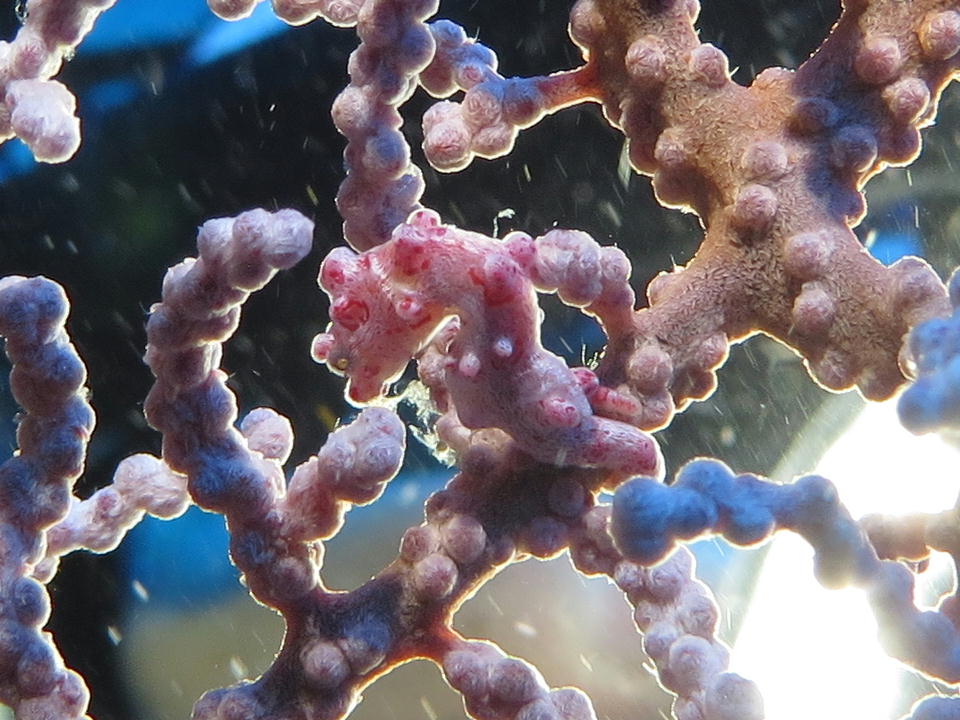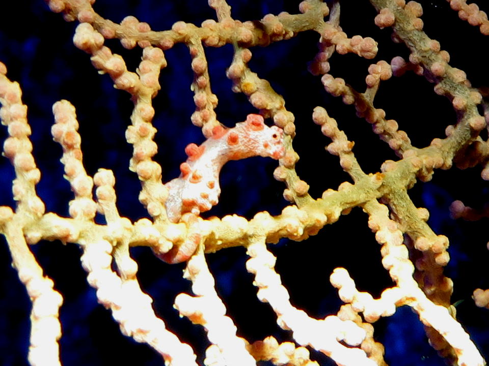| 2本目は久部良バリ。 ピグミーシーホースが5匹いたよ。 これはそのうちの1匹。 ちょうど向こう側からダイバーのライトが当たっていて、 逆光気味に撮影できた。 |