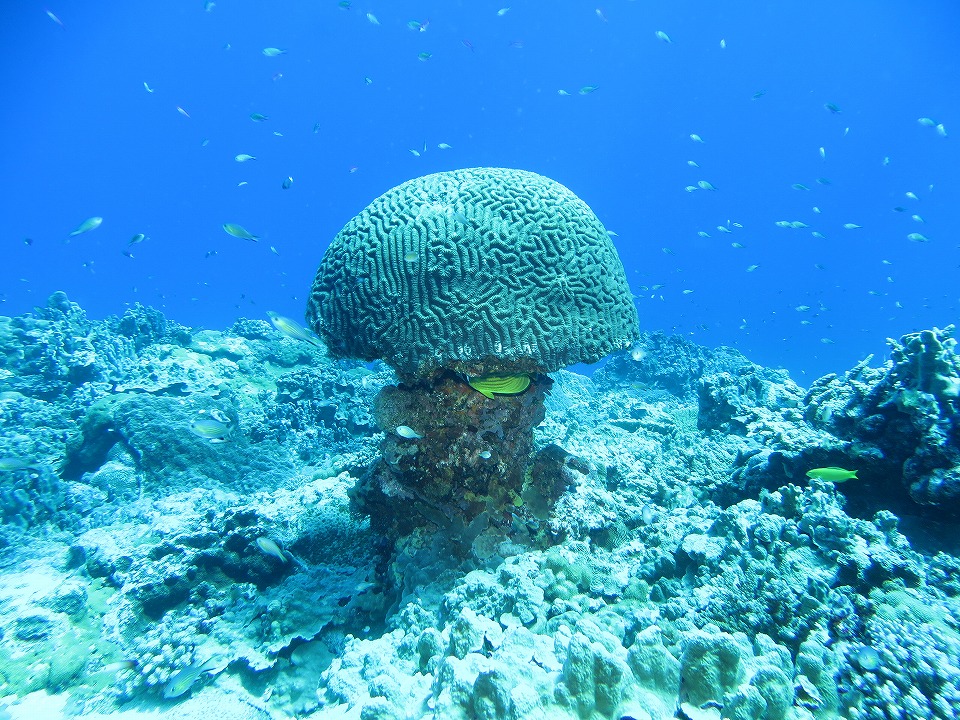 | 青味が強調されているが、サンゴが実にきれいで、与那国島らしからぬ風景。 ここは石垣島かい、と思いたくなる。 |