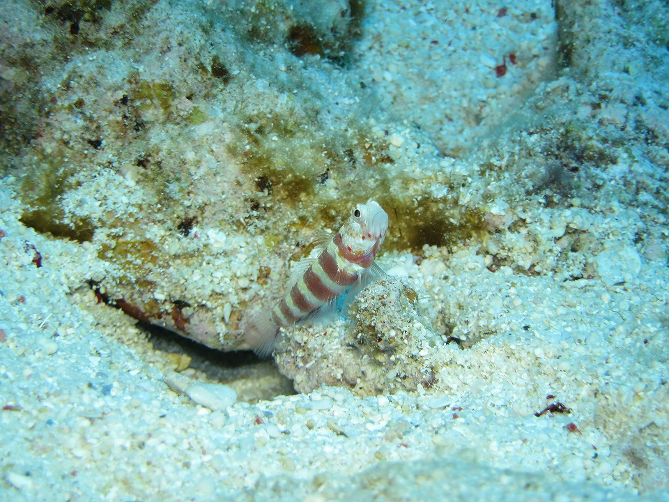 | テッポウエビと共生しているクビアカハゼ。 巣作りをしているはずのテッポウエビが出てこなかったのが残念。 |