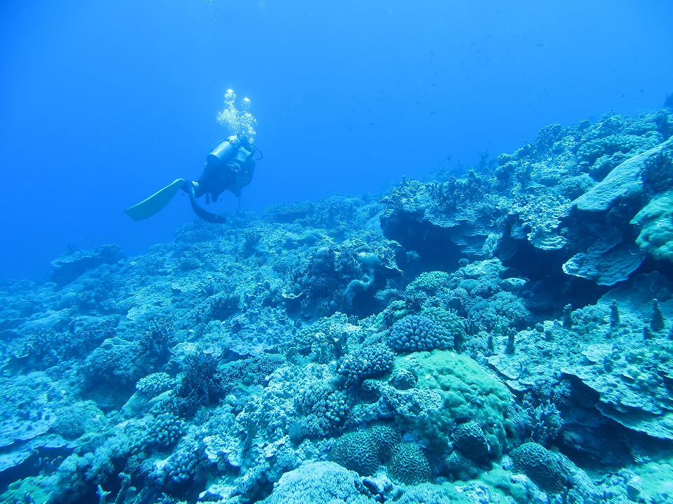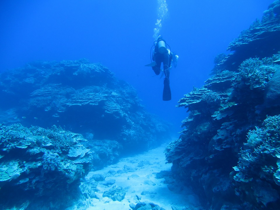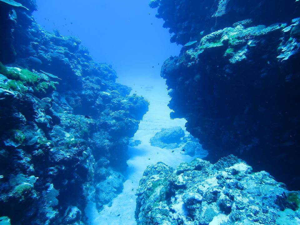 | ドロップオフから砂地に向かう。 たいていは先に砂地に行くから、 そのときは写真の奥側からこっち側に降りてくるイメージだよ。 |