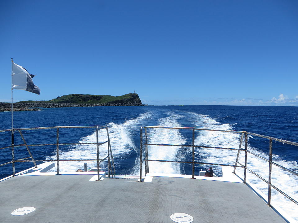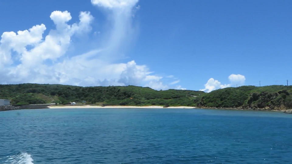| 反対側のボート左舷の、ナーマ浜から入埼灯台の約24秒の動画はこちら。 コンデジをハウジングに入れた状態で撮影しているので、音声はほとんどないよ。 |