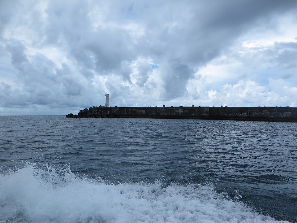 | ボートの右舷の、港外に向かう約15秒の動画はこちら。 コンデジをハウジングに入れた状態で撮影しているので、音声はほとんどないよ。 |