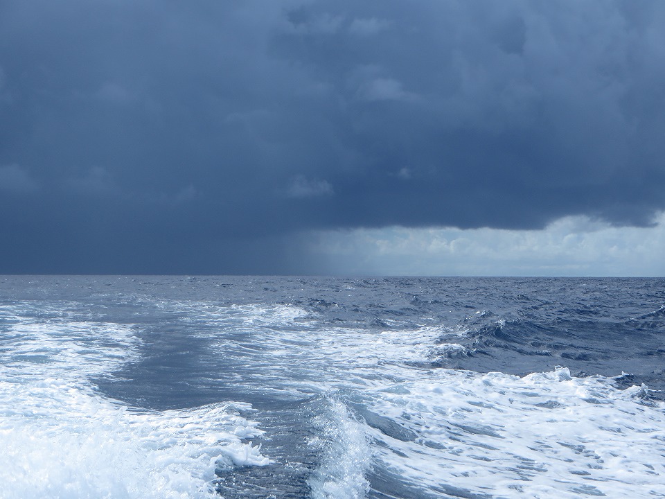 | 帰港するときの台湾方向。 雨がやってくるのが分かる。 このあと、18:30頃に土砂降りになった。 |