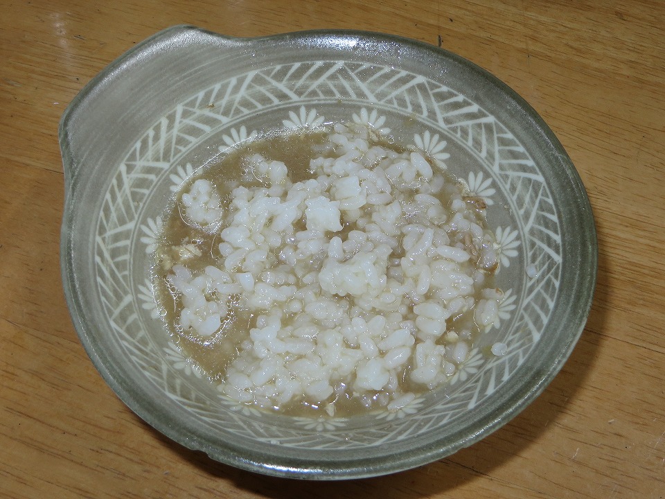 | 牛汁のスープがとても旨かったんで、コメを投入してしもた。 くゎっちーさびたん。 |