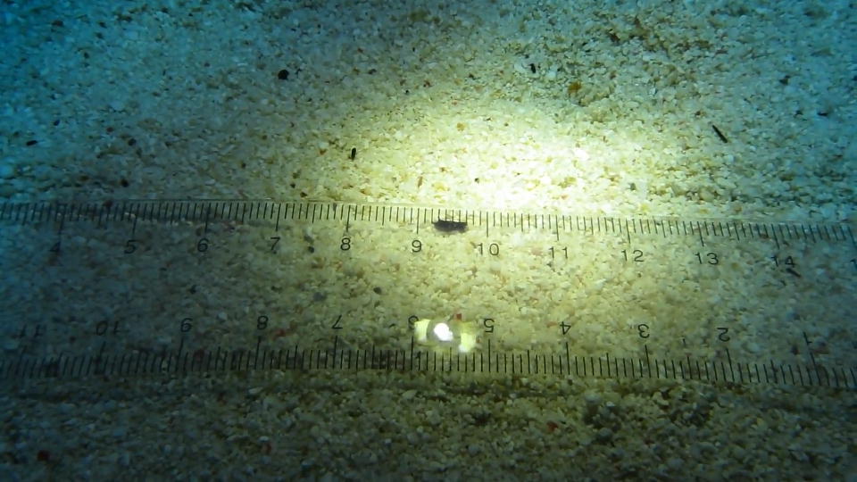 | 砂地では、お馴染みのヒノマルテンス(セレベスレザーフィッシュ)と遊ぶ。 ヒノマルテンスと戯れているヒロキチの約7秒の動画はこちら。 |