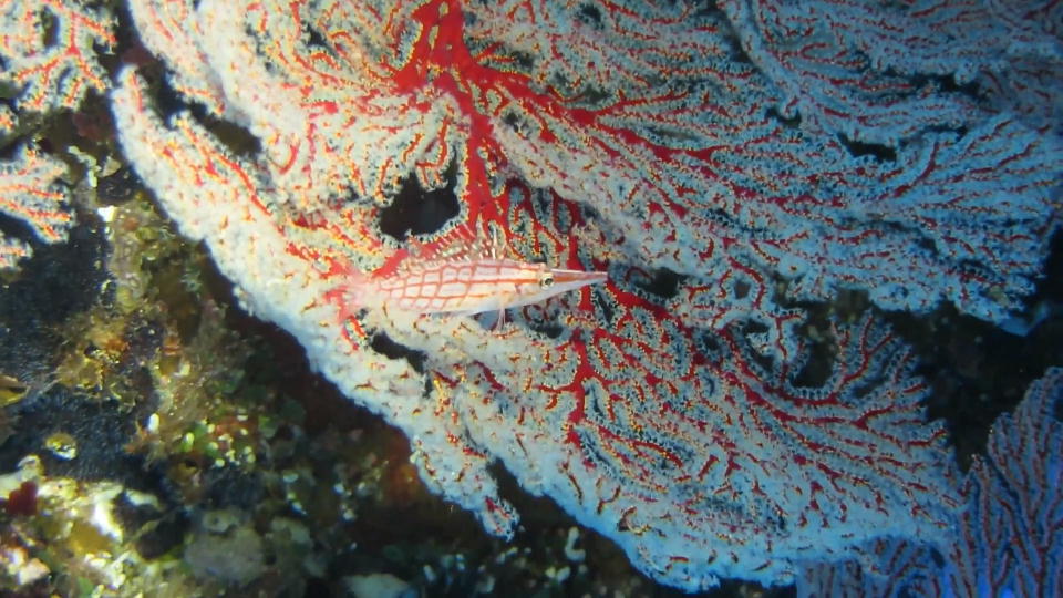 | 砂地から降りてきたドロップオフにいたクダゴンベ。 約13秒の動画はこちら。 いやぁ~、実に楽しいバビトンでの1本だった。 |