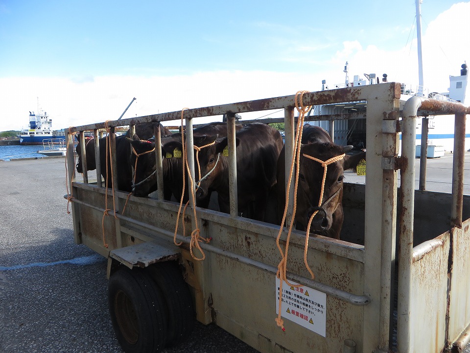 | これから「フェリーよなくに」に積み込まれる仔牛。 |