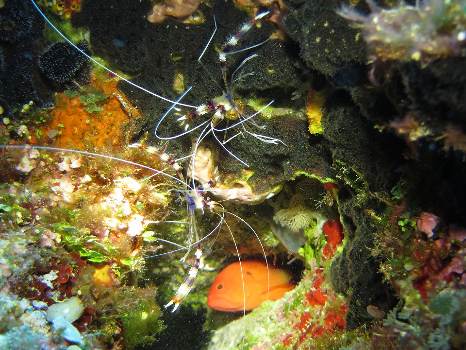 | オトヒメエビ。後ろには小さめのアカハナ? |