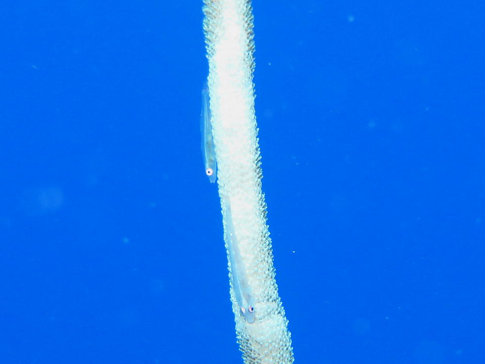 | 1本目は深場ポイントの「北東の根」で潜る。 根の壁面にいたクダゴンベ。 |