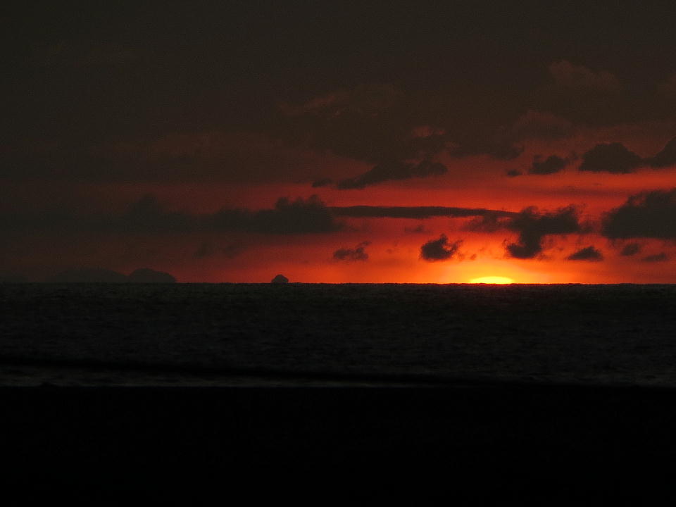 | 19:41に太陽が水平線に沈んだ。 あれ??? 与那国島からは水平線に沈む夕日は見られないはず(=台湾の山並みに沈むはず)じゃなかったっけ??? しかも海上に島らしき影も見えるし。 要検証だ。 この後、石垣島からボートで帰ってきたハチローさんやスタッフみんなで呑んだ。 たのしかったな~。 |