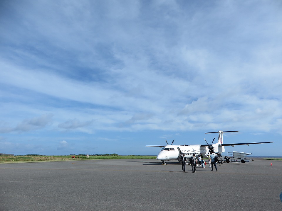 | 飛行機の外に出たら、キター! この暑さ! 灼熱! これだよこれ、梅雨明け後の与那国さ~。 |