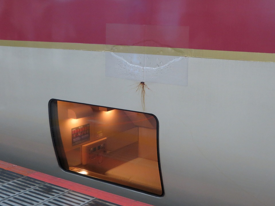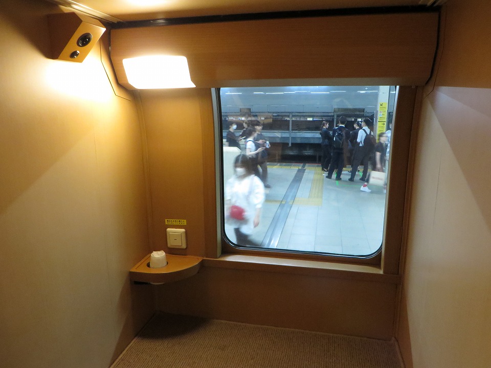 | 運賃(乗車券)の他には特急券(特急料金)だけで乗れる「ノビノビ座席」に横浜まで乗る。 今回は上段(写真の車両の上の窓の区画)だ。 |