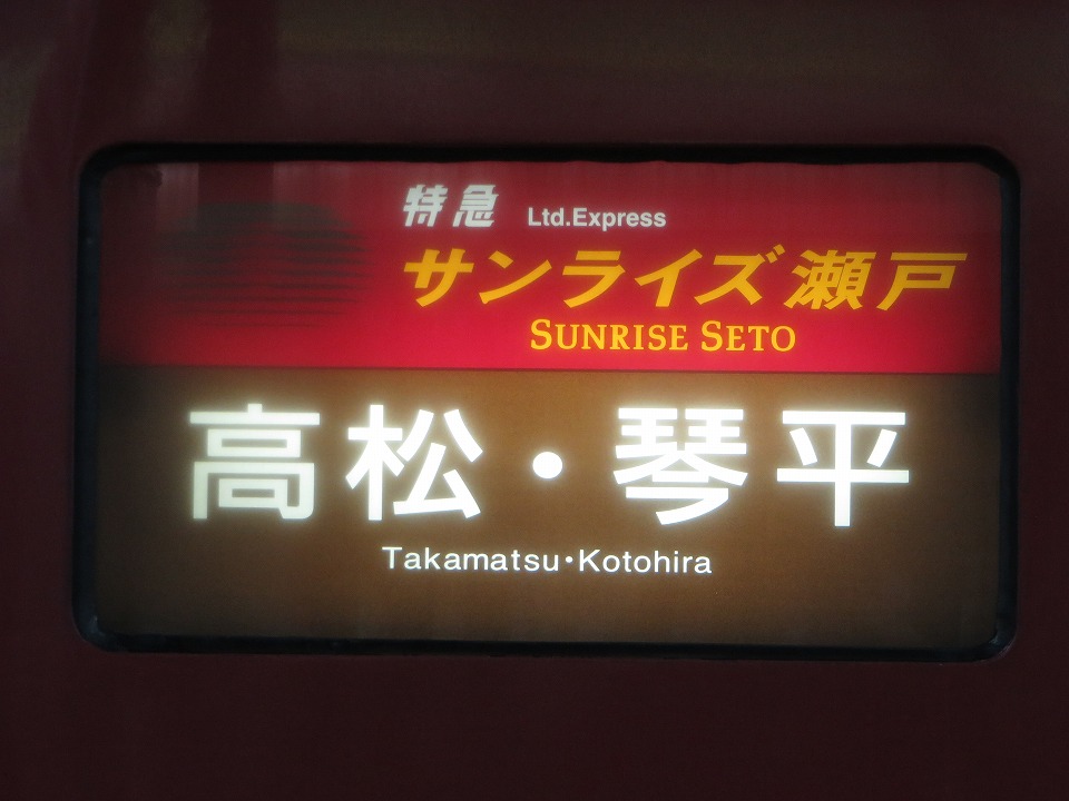 | 「サンライズ瀬戸」は基本的には高松行きだが、週末などにときどき琴平行きになる。 |