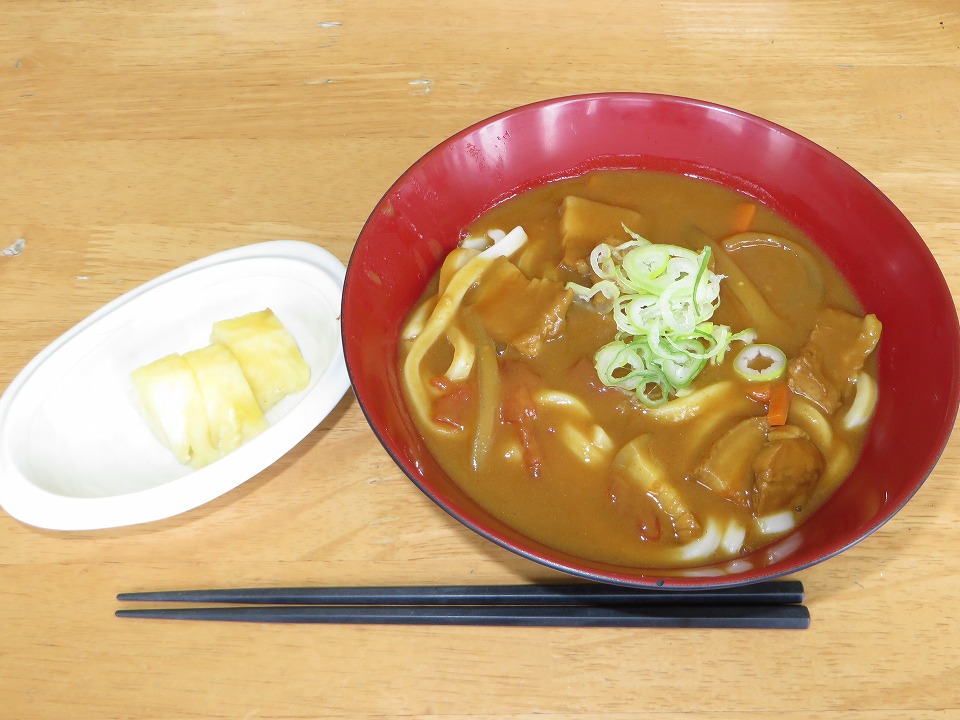 | やった! 昼メシ! カレーうどんだからダイビング中にゲップしたら、カレー味だろーなー(笑)。 |