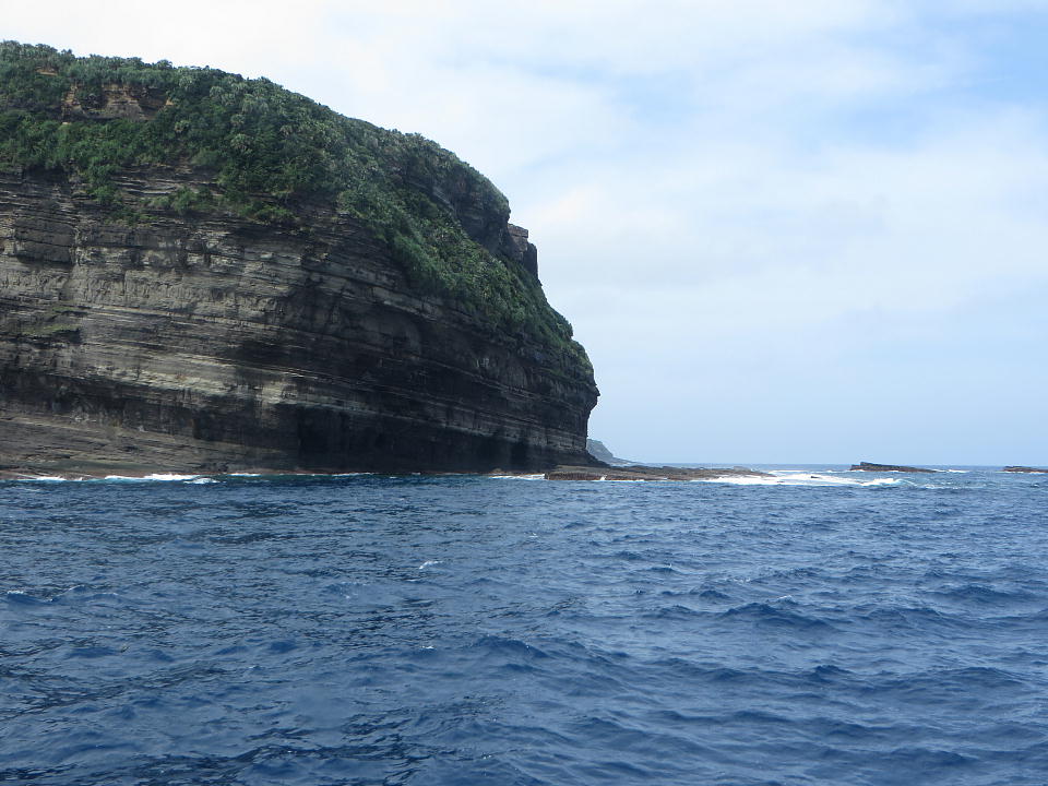 | EXして水面休息。 ボートを軽く走らせて、立神岩の近くでUターンして東へ戻る。 |