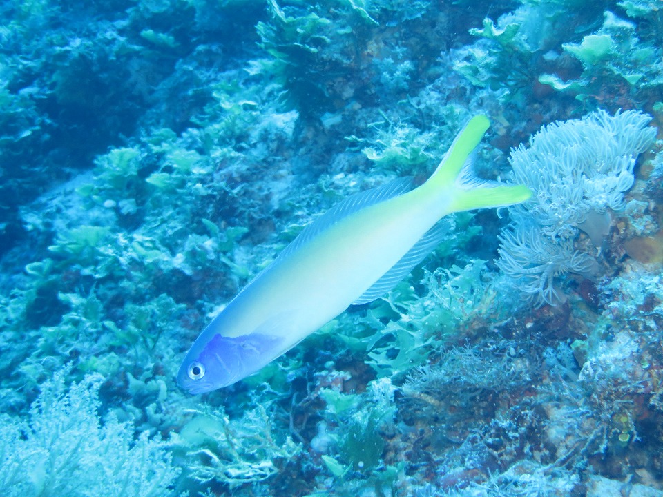 | 1本目は久部良バリで潜る。 アオマスクを間近で撮影できた。 この写真はノートリミング。 魚の色がもっとハッキリ出れば、なおよかったね。 |