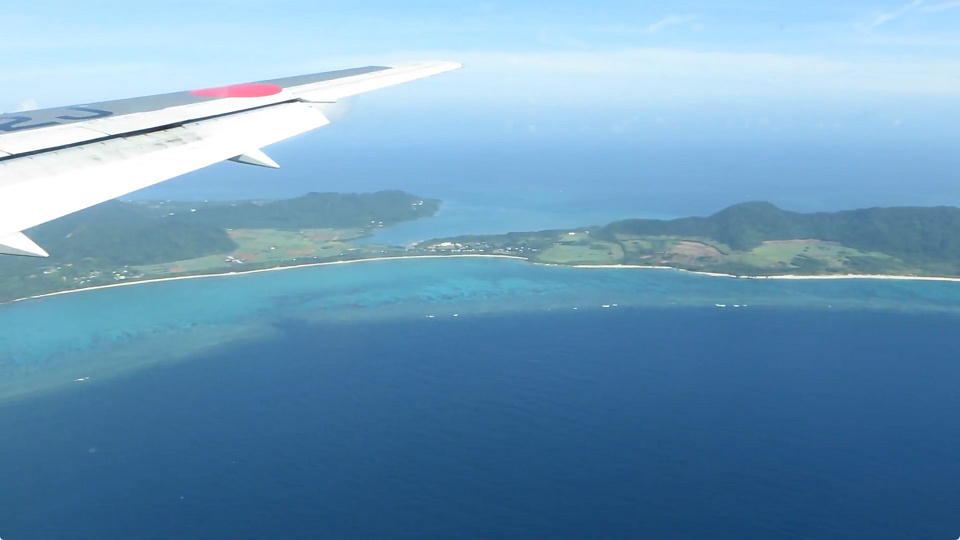 | 離陸後にぐい~んと右旋回して(このフレーズ、いつも使ってるな。)、 やいまの島々を見ながら与那国に向かう。 竹富島から西表島にかけての約3分のちょっと長い動画はこちら。 ナツのやいまをゆる~く眺めてください(笑)。 |