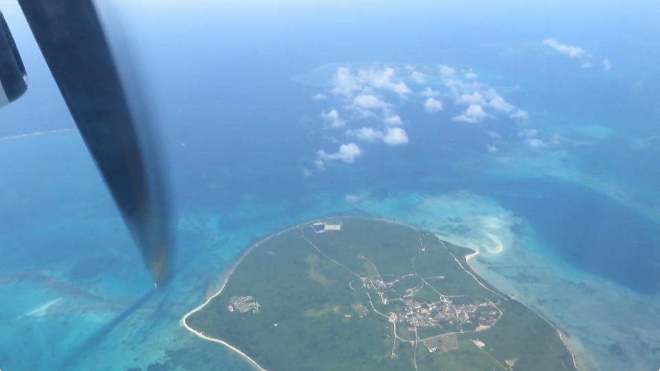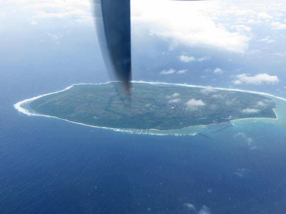 | 離陸してから、そろそろ西表島だな~と思った頃、飛行機は右旋回した。 その後、眼下に西表島が見えなかったので「西表島の南を飛んでるな。」と思っていた。 すると今度は左旋回して、程なく波照間島がこんなに大きく見えた。 この写真は北から南方向を撮影。ノートリミングです。 そして、波照間島を通り越したら、大きくぐい~~~んと左旋回して石垣島に向かった。 当然、進行左側にやいまの島々が見えるわけで、左側の席の観光客が明らかにざわつき始め、盛んに写真を撮っていたのがおもしろかった。 俺は、こんなに南の針路は初めてだった。 |