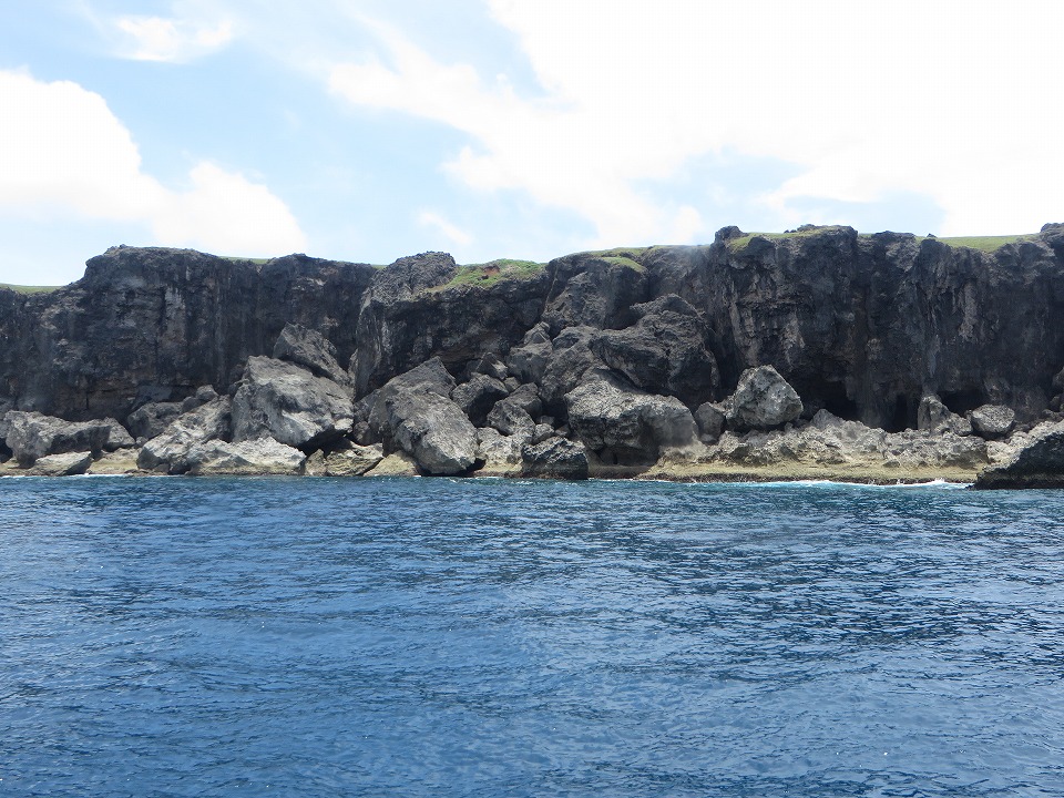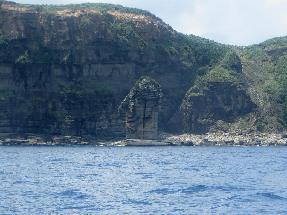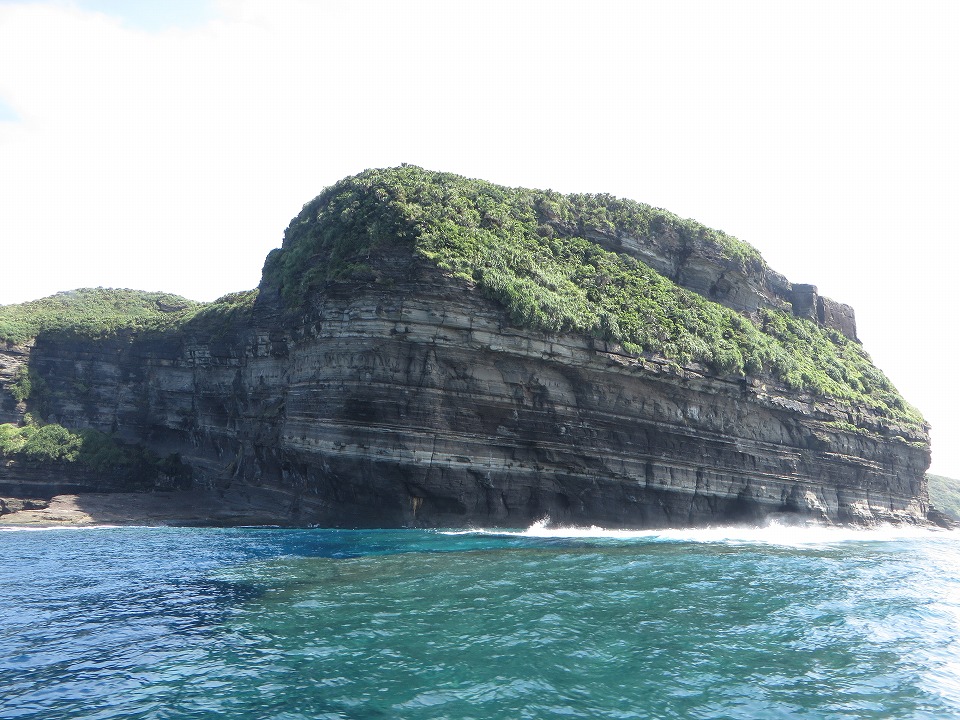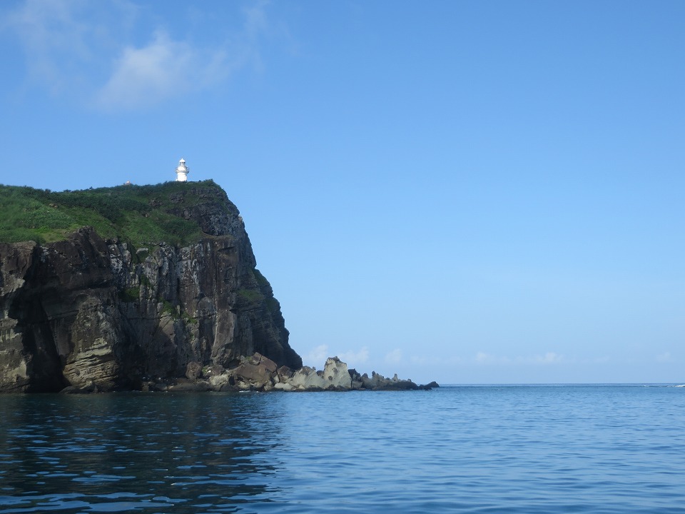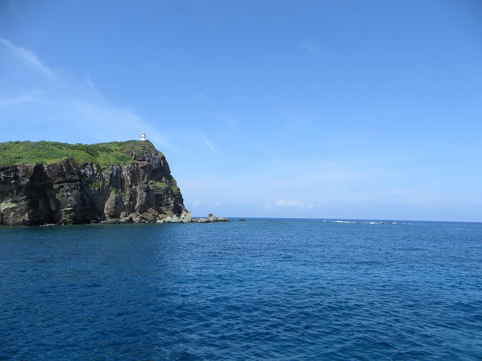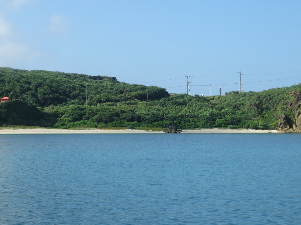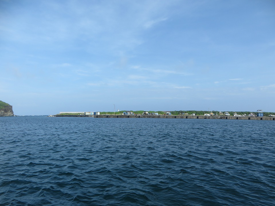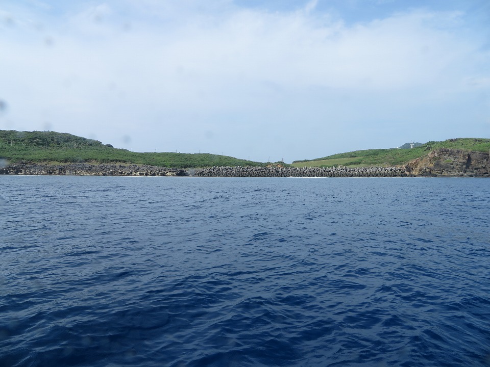 | 7月の島の南側の海況。 島の北側か!とツッコミたくなるような穏やかさ。 翌日に気象庁の記録を確認したら、この写真の撮影時刻にはモロ"北風"だった。 |