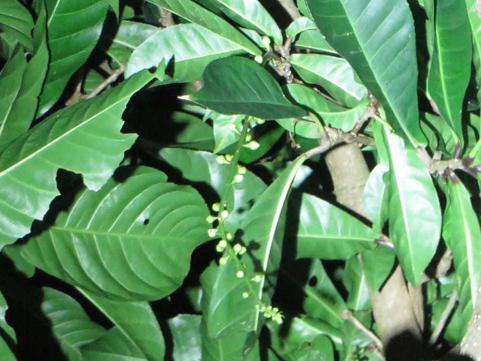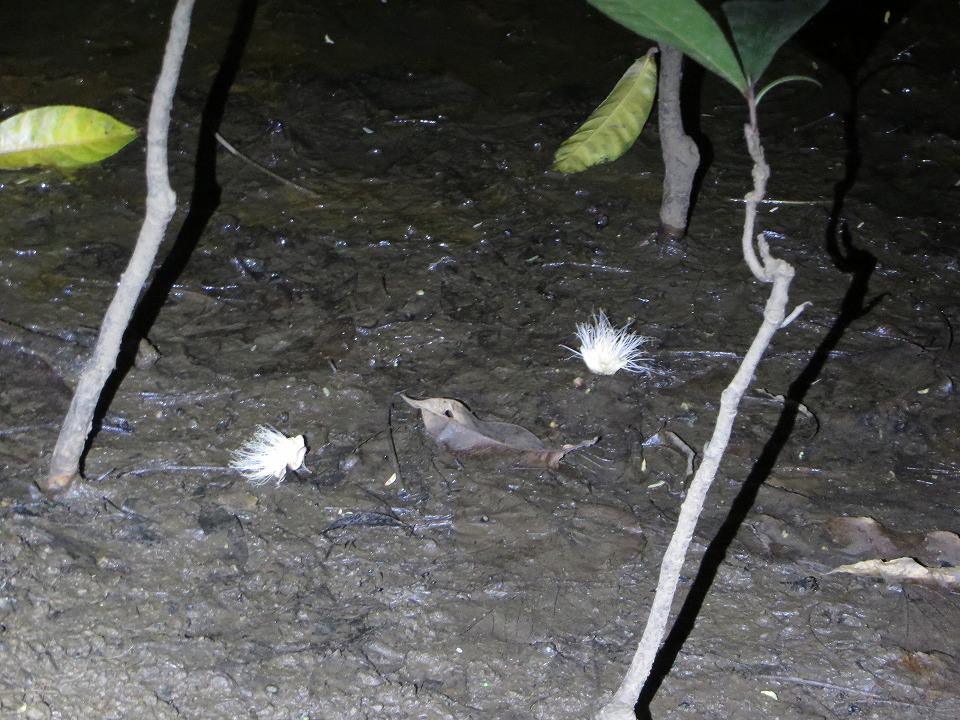 | 木の下の地面には落下したサガリバナがあった。 |