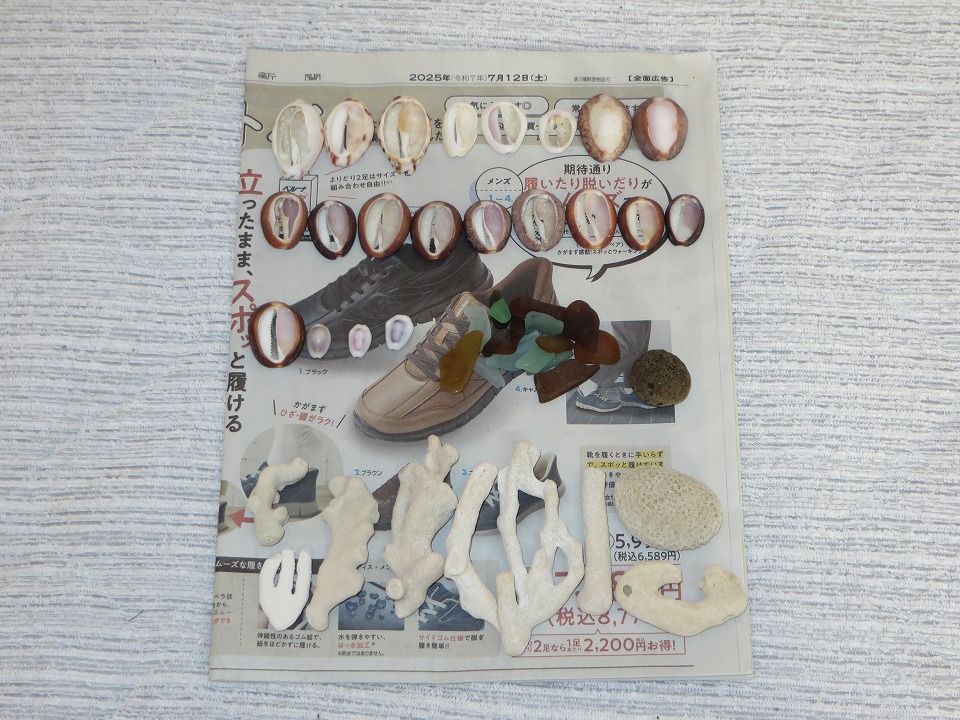 | 呑みとメシが終わったら、与那国到着初日の夕方恒例の箸置き探し~! ナーマ浜で小1時間、箸置きになりそうなサンゴや、頭頂部欠損のタカラガイを探す。 ちなみに、頂部欠損のタカラガイは箸置きではなくて、細い麻紐でくくって繋げてノレンにでもしようかと思っている。 ただ、ここ数年続けてるんだけど、ノレンにできるような数は集まっていないので、作れるような個数が集まるのは一体いつのことやら。 |