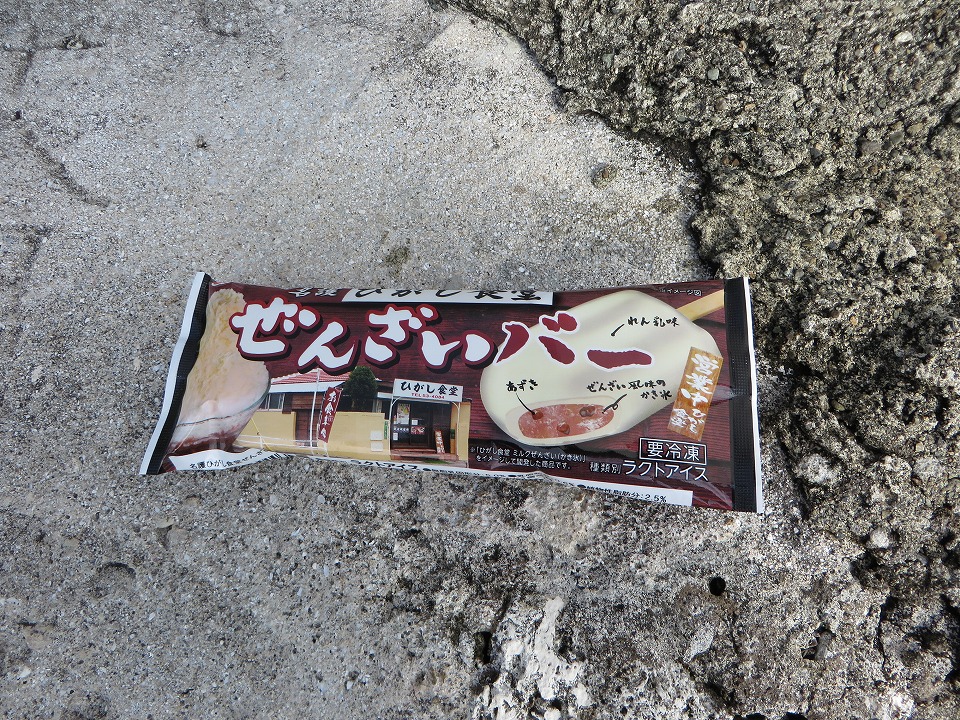 | 大朝商店で「ぜんざいバー」160円ナリを食す。 ど~でもい~けど、このタイミングで腰が痛くなってきた(苦笑)。 |
