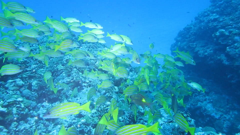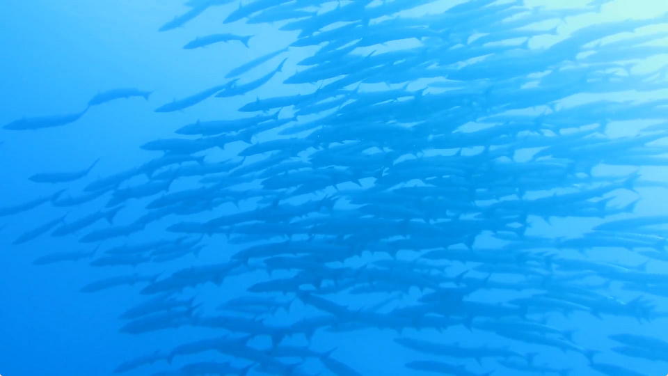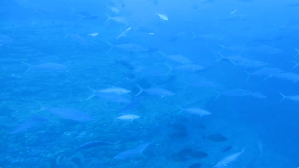 | 南の根で潜ったら、ツムブリの群れがいたよ。 約24秒の動画はこちら。 |