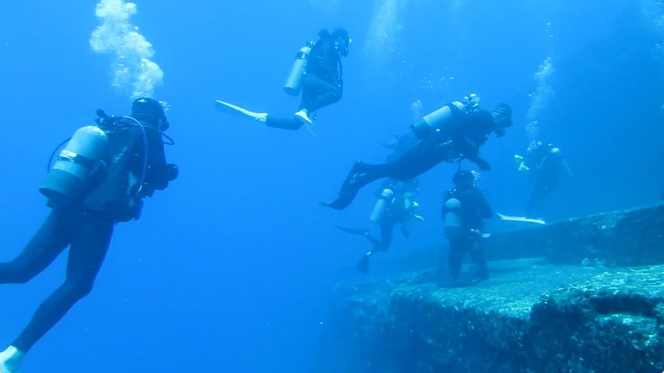 | 少し休憩して、次は海底遺跡に行く! 真夏のこの時期に行けるのは珍しいので、嬉しいよ。 |