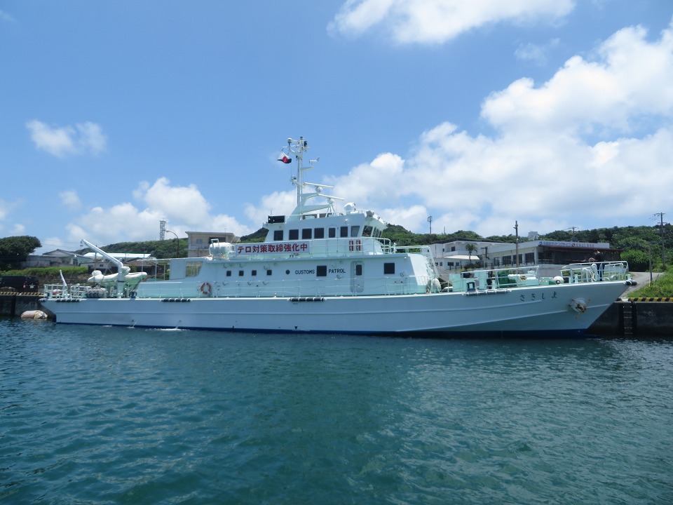 | 2本目に出ようと港に来てみたら、税関の「さきしま」がいたよ。 船形だけだと海上保安庁の巡視船も見える。 |