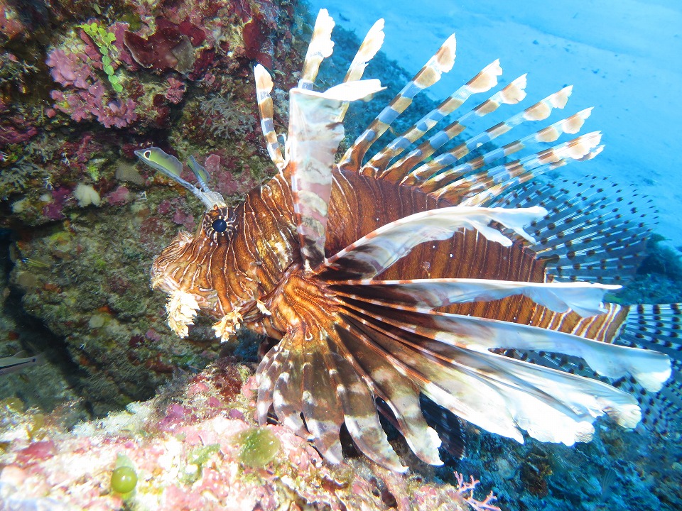 | 砂地から落ちたドロップオフにいたハナミノカサゴ。 こっちを向いてくんなかった。 |