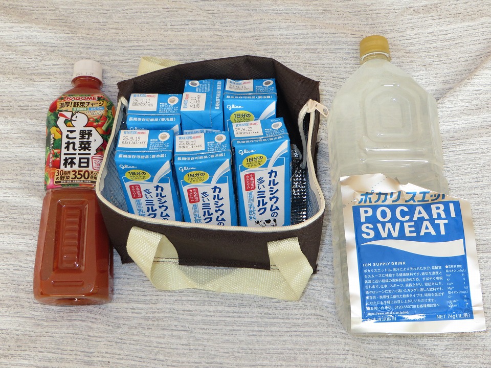 | 与那国に来てから写真を撮っていなかったが、栄養補給用に信州から野菜ジュース3本を送ってあった。 また、これまでは、常温保存可能な牛乳も送っていたが、1本で1日分のカルシウムが摂れる乳飲料(「牛乳」とは書けない。)を 見つけたので、手持ちで運んできた。常温保存はできないので送るわけにはいかなかったんだよね。 それと、粉ポカリは規定の倍量(1袋を2リットルの水で溶かす。)で作ってある。 みんな、共同の冷蔵庫に入れて、少しずつ飲んでいるのだ。 |