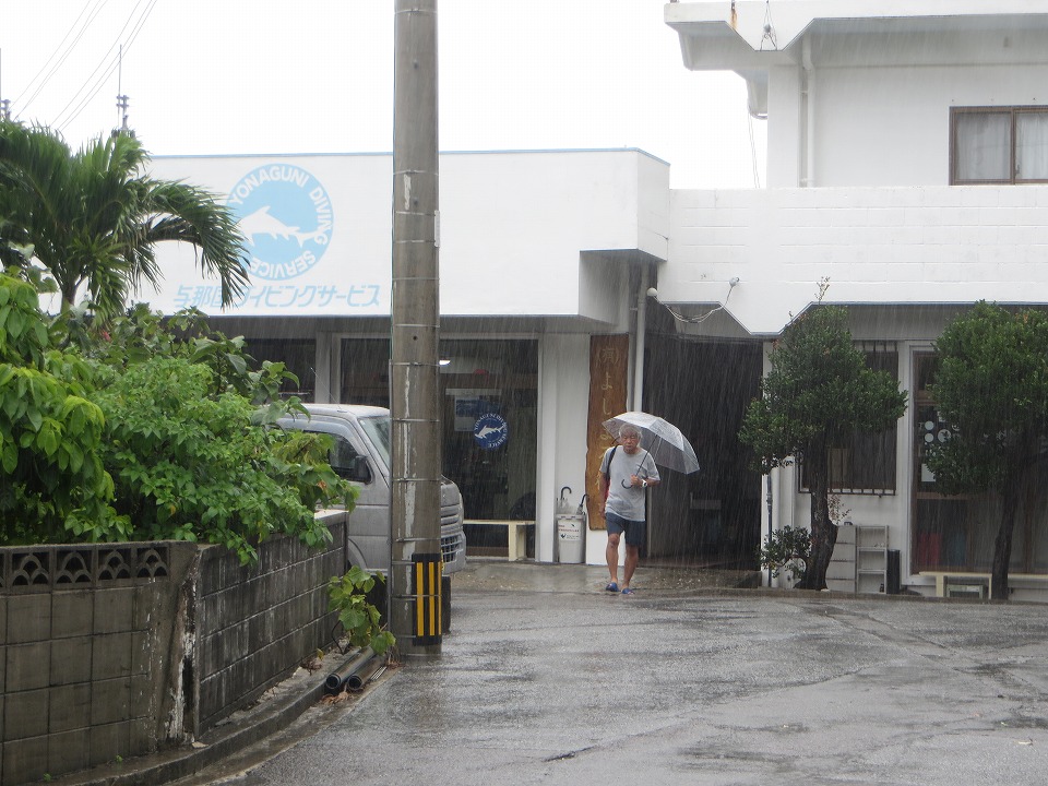 | 朝の天気予報では、午後から雨になる予報だったので、器材を乾かす時間を少しでも稼ぎたいため、今日の3本目はキャンセルした。 雨は降ったりやんだりで、器材を洗い終えたときは結構強く降っていた。 ダイビングが終わり、夏のヨナグニが終わった。 このあとは、部屋で引っ越し準備(=荷物片し)に入った。 |